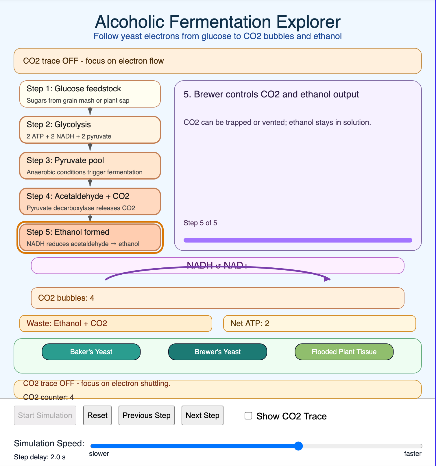 Interactive MicroSim focusing on alcoholic fermentation in yeast and plants. -