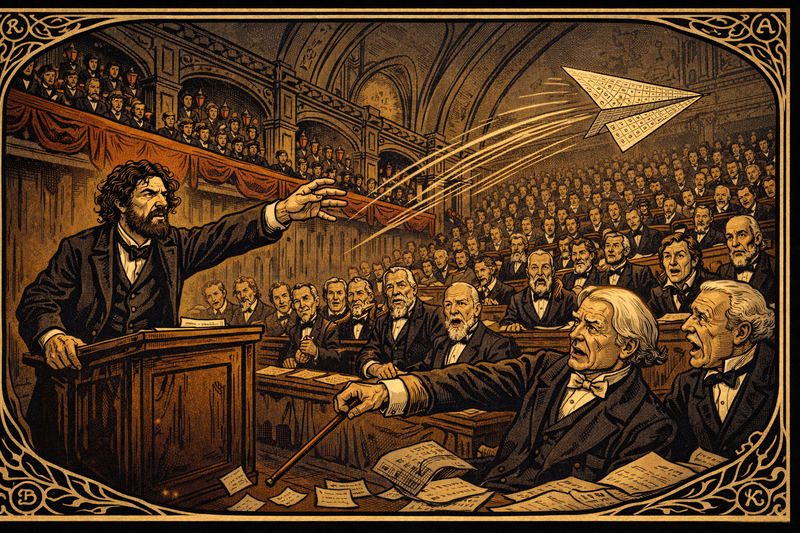 At the Karlsruhe Congress, he presents the periodic idea to wary European chemists. “Your table is a tapestry of coincidences,” sneers one. Dmitri calmly folds the table into a paper plane emblazoned with gaps. “Coincidences predict nothing. Watch these gaps fill.” He launches the plane across the hall—symbolic bravado that students later repeat as legend.