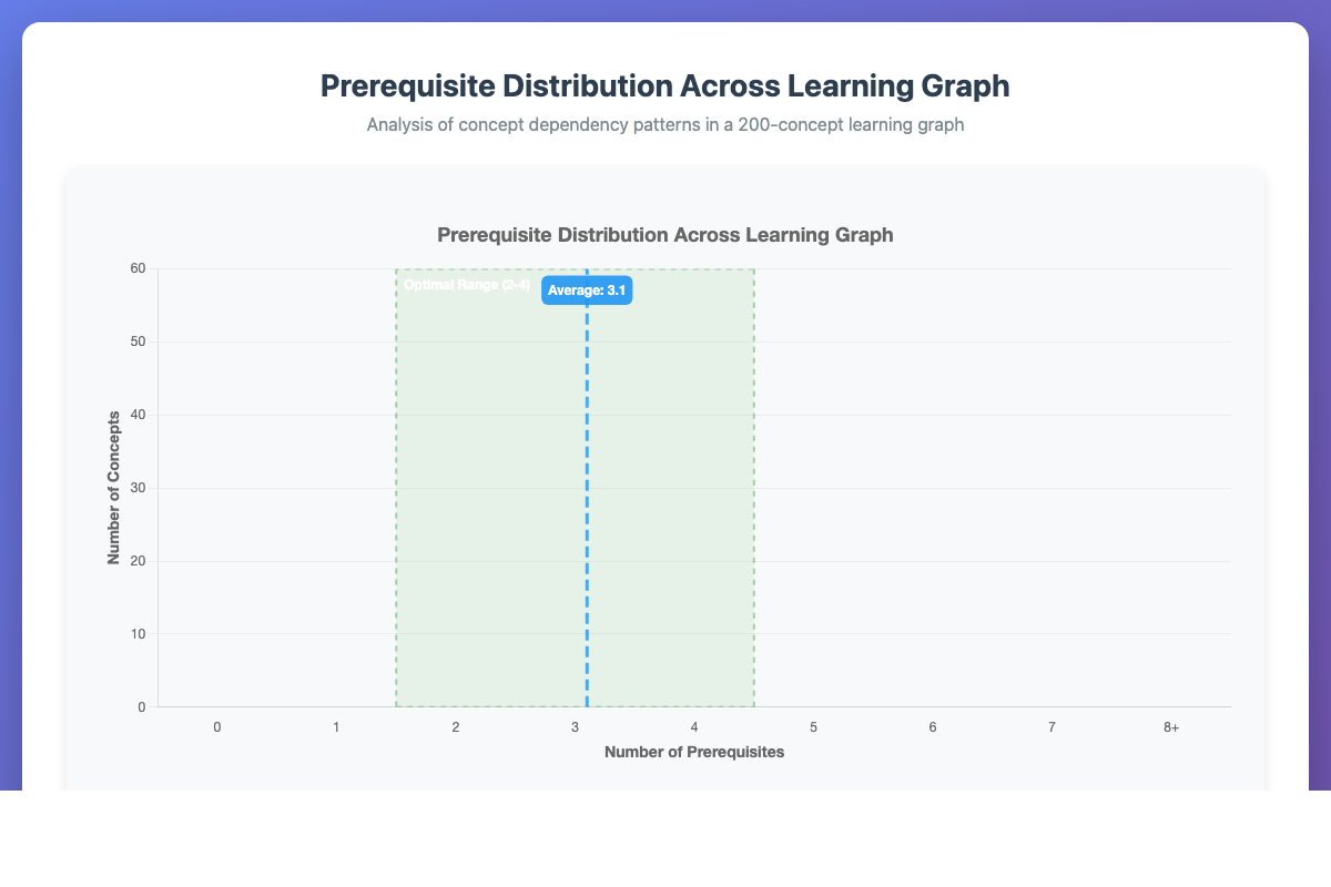 Interactive histogram visualizing the distribution of prerequisite counts across all concepts in a learning graph.
