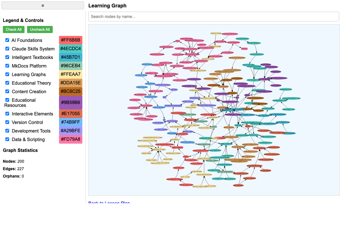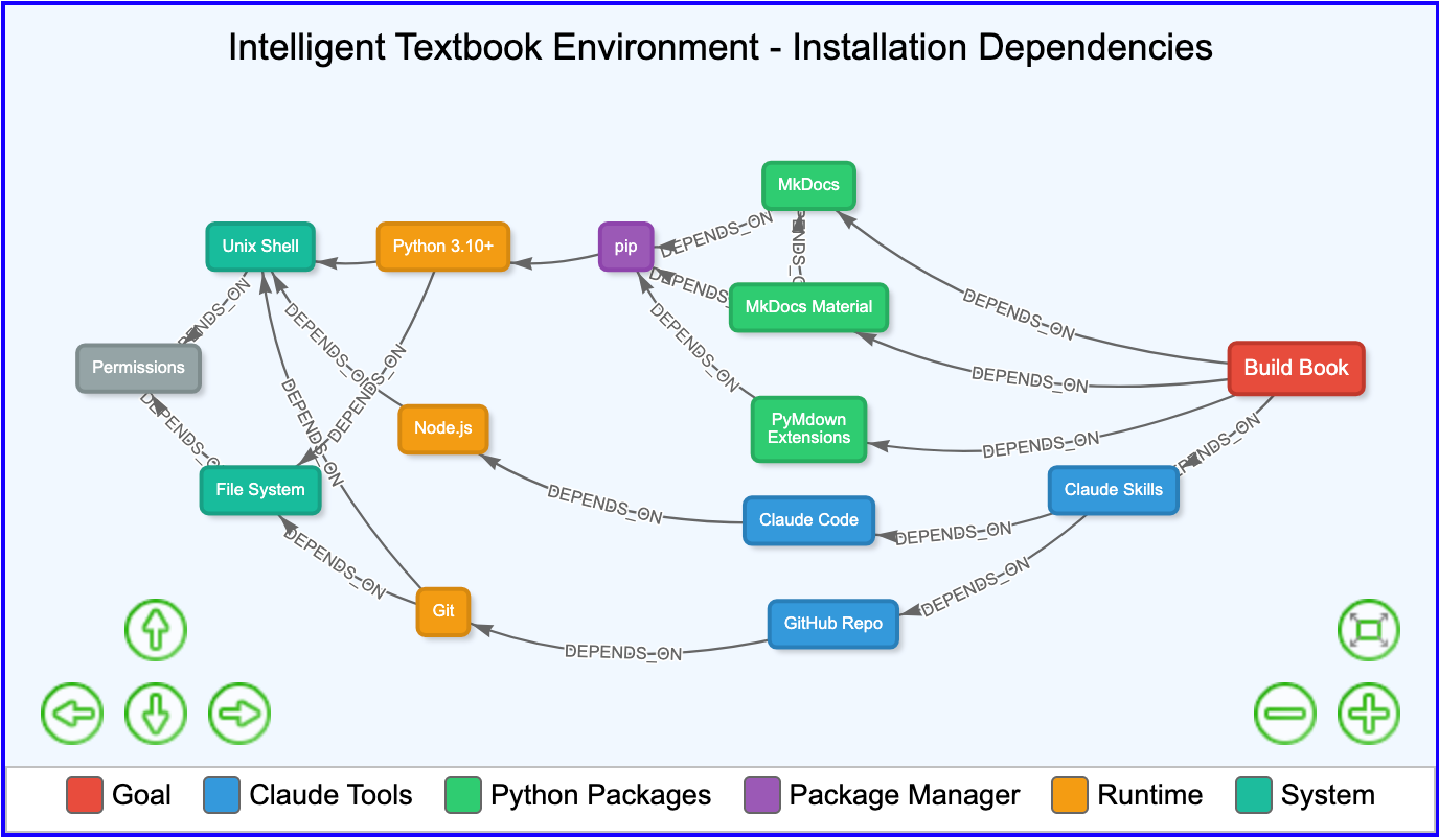 Interactive dependency graph showing all software components required for intelligent textbook development.
