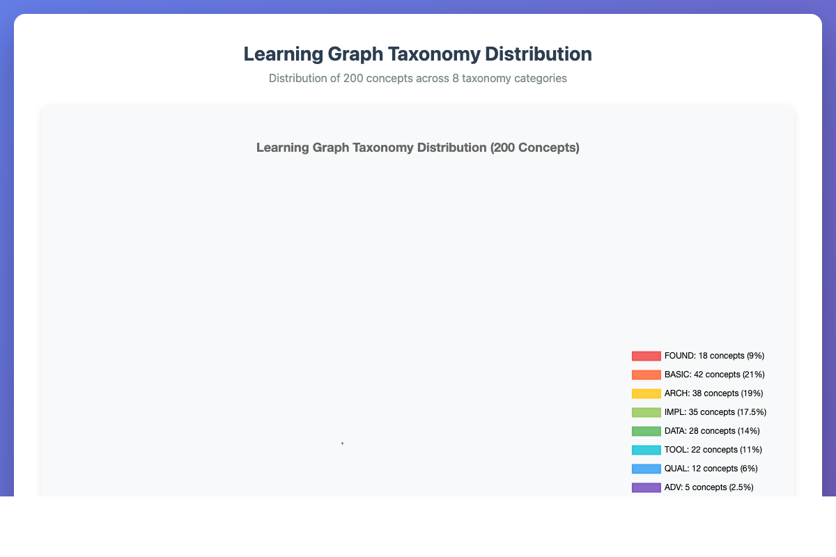 Interactive pie chart visualizing how 200 concepts are distributed across 8 taxonomy categories.