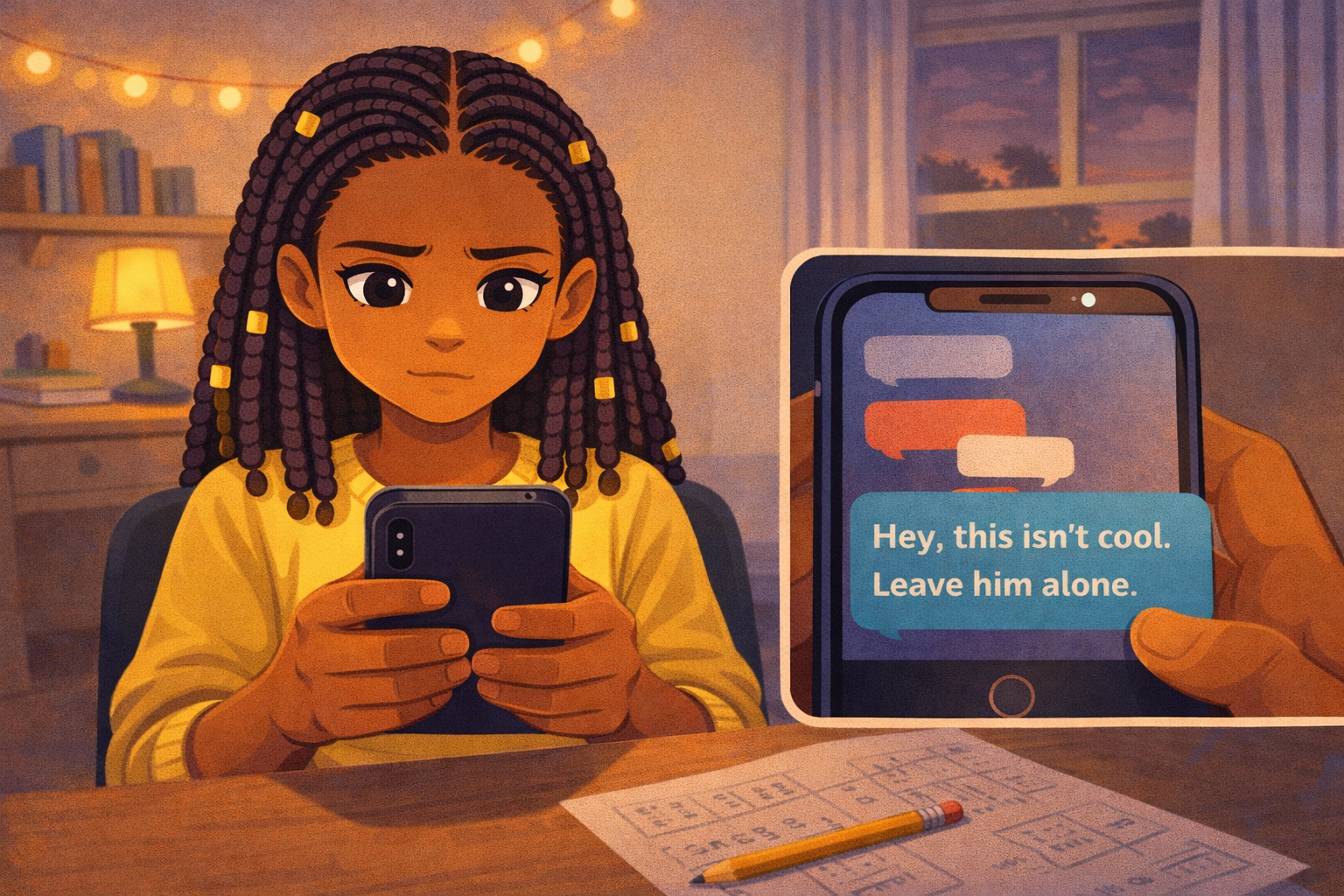 Nia was not the one typing mean messages. She was not the target. She was something in between — a bystander. For a while, her silence felt safe. But silence in a group chat can feel like agreement to the person being hurt.