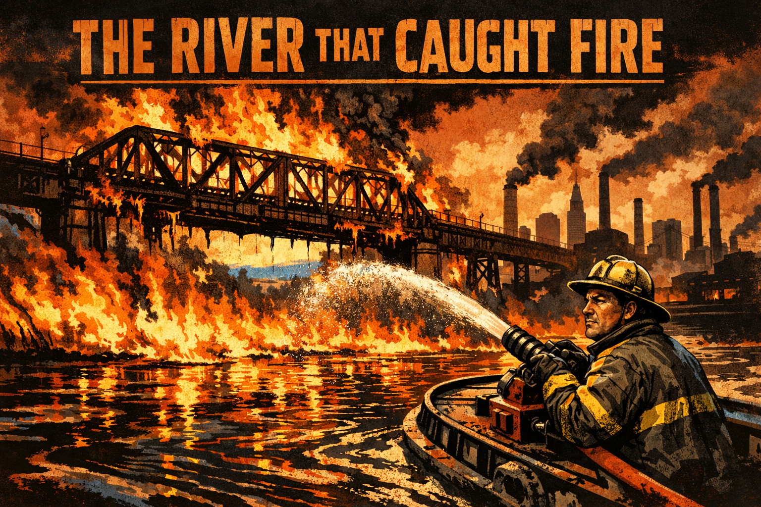 For a hundred years, Cleveland's Cuyahoga River caught fire repeatedly — and nobody cared. The 1969 fire sparked Earth Day, the creation of the EPA, and the Clean Water Act. This is the story of how a burning river forced America to confront a century of environmental neglect. -