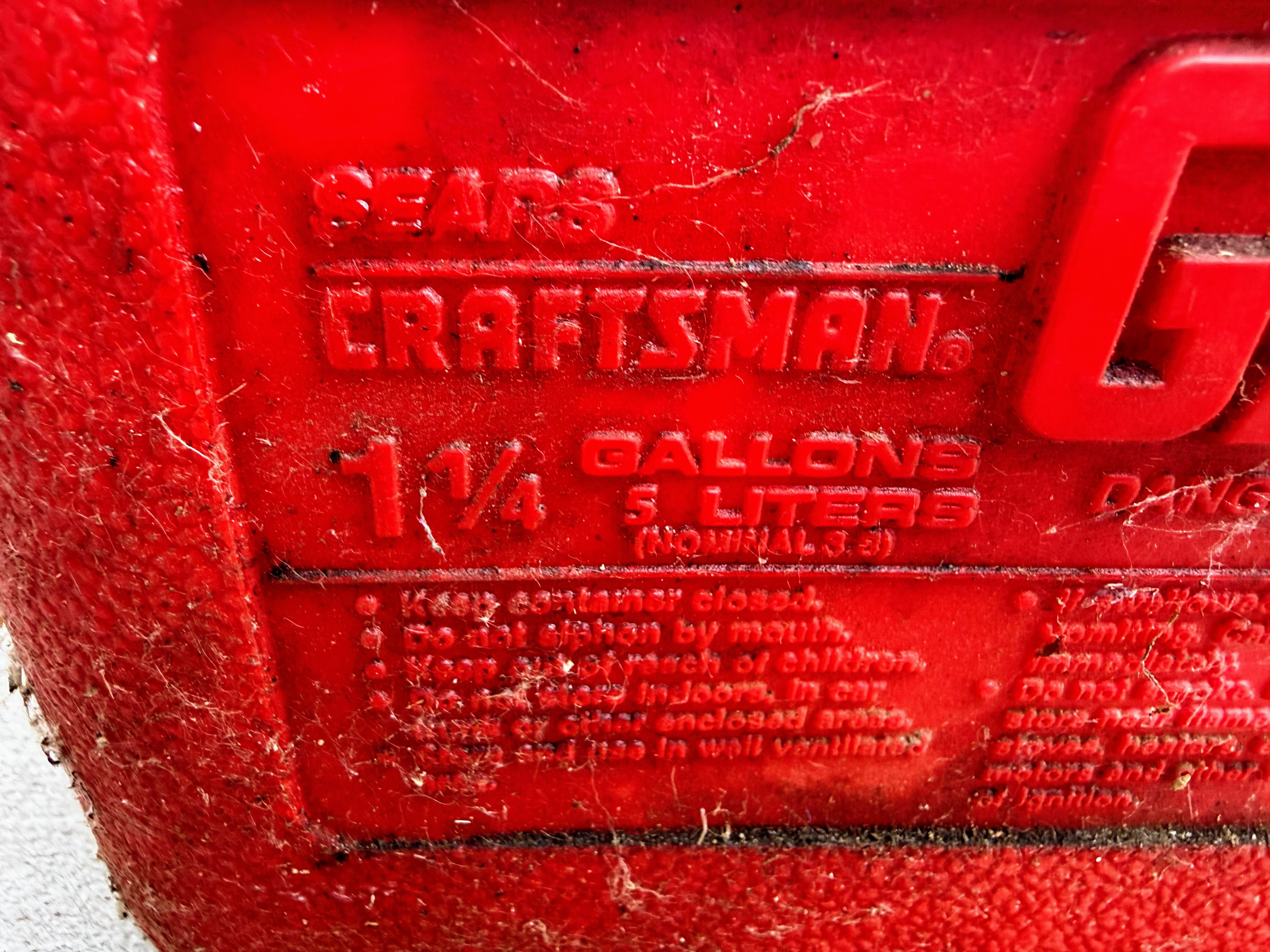 Here is the gas container I use. Go to the gas station and fill it up. This one holds 1 1/4 gallons of gas. For this guide, we will assume a full container, but you can also use partially filled containers as long as you can estimate the amount of gas in the container.
