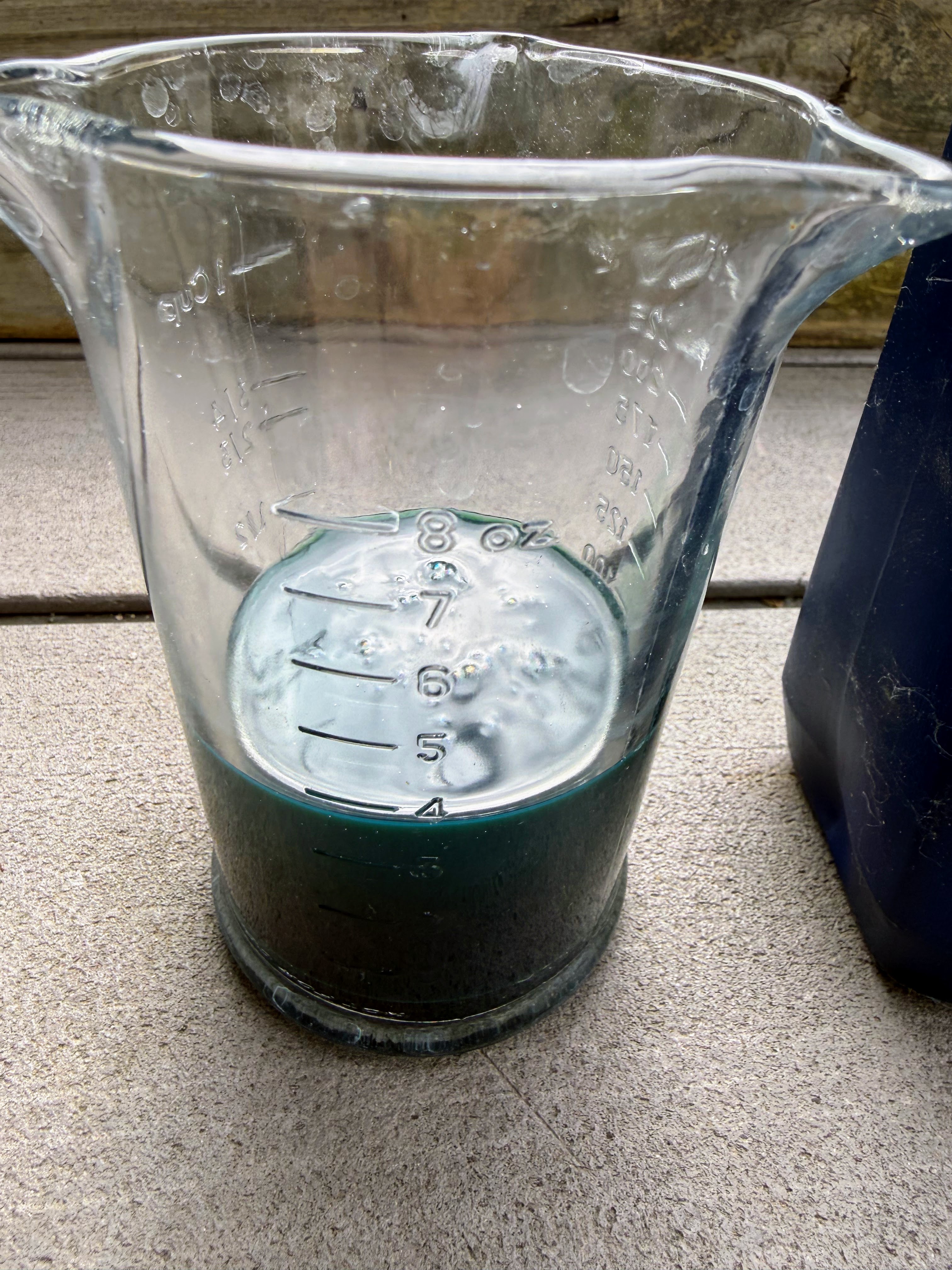 Here I am measuring the oil in the glass beaker and I have about 3.5 ounces. This is just a fraction more than I needed.