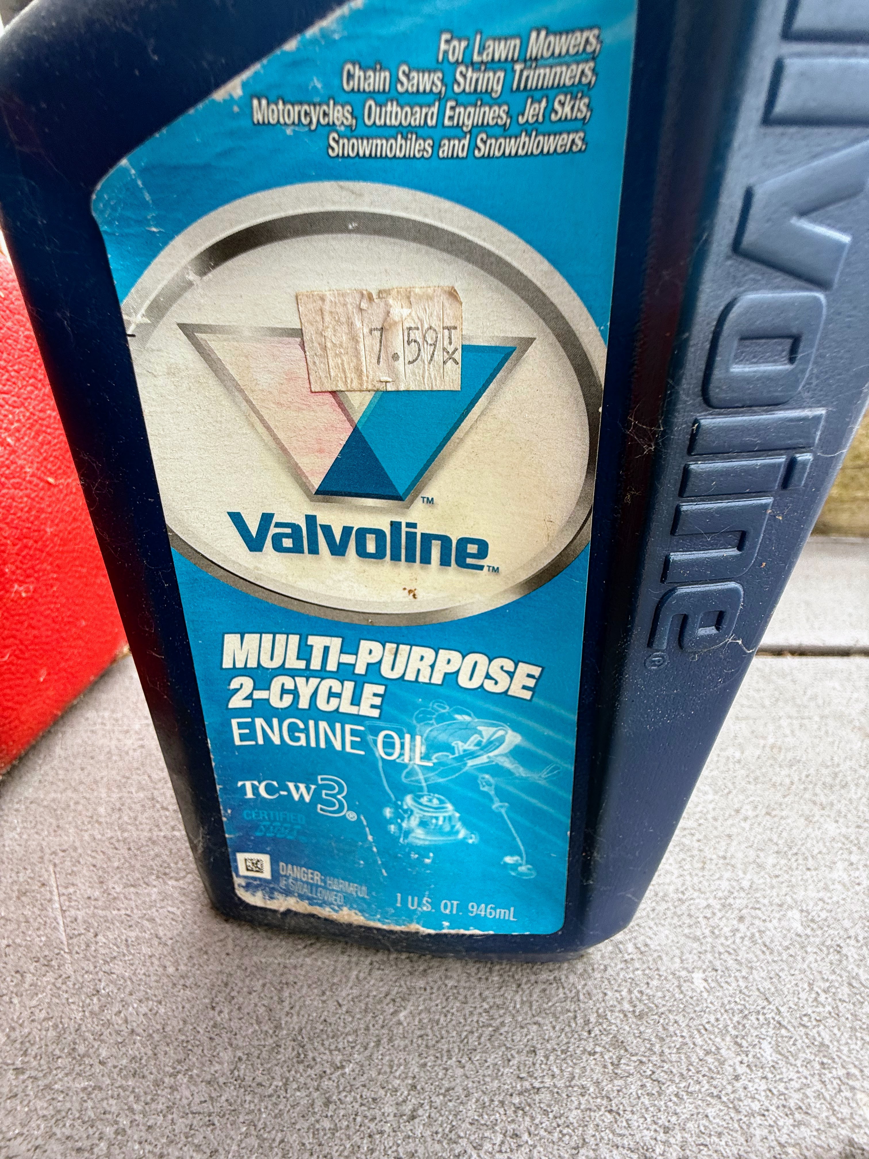 This is a photo of the two cycle oil bottle. Some have a transparent part on the side to show you how much is in the bottle. Ours does not have this.
