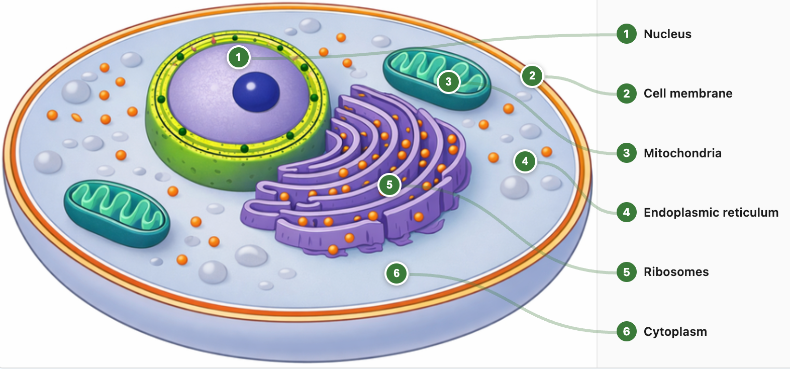 Imagine opening a textbook chapter on the human cell. In a traditional book, you see a static diagram with numbered labels pointing to parts of the cell. It might look something like the following static image: