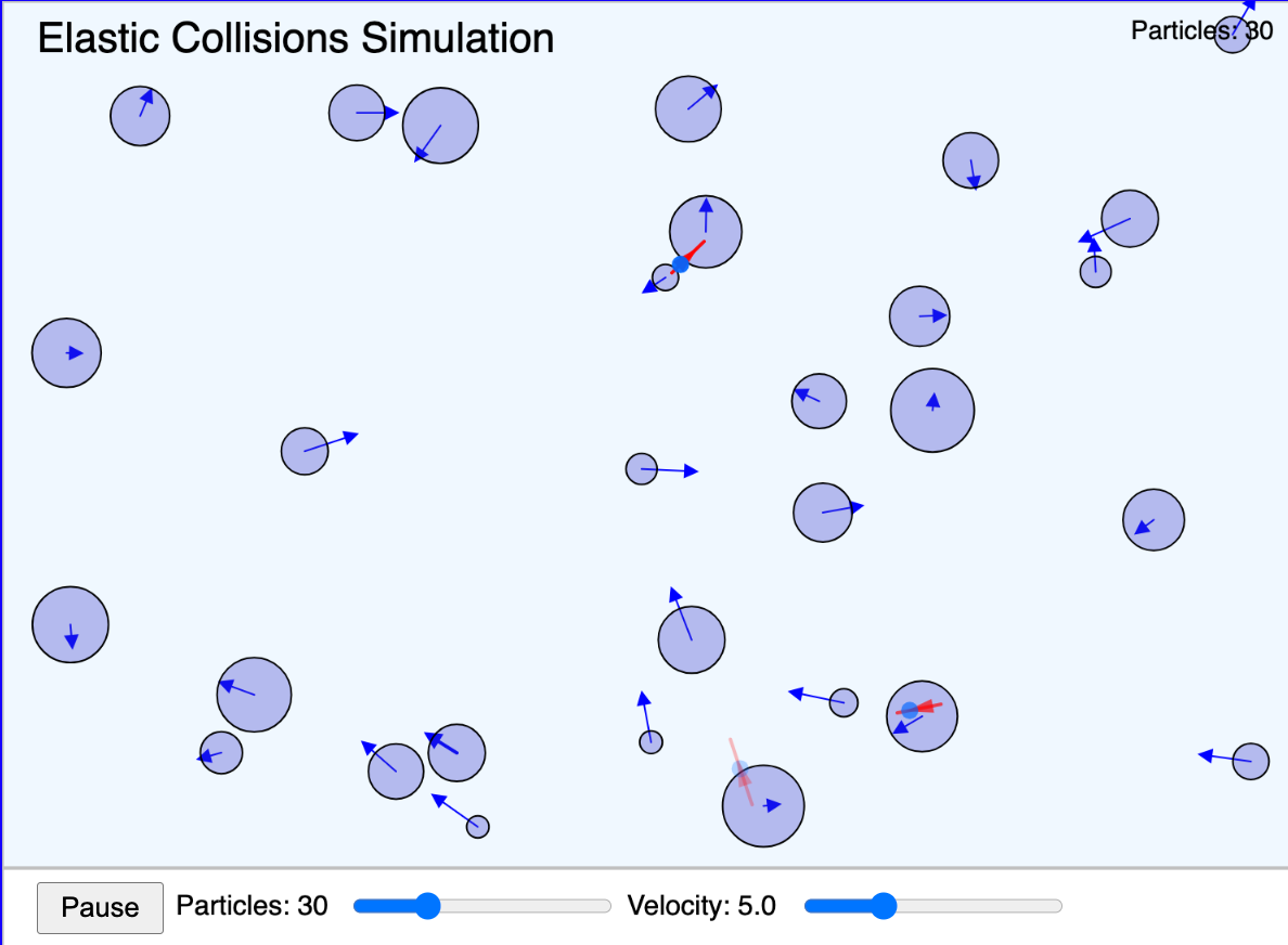 Interactive simulation demonstrating elastic collisions between particles of varying masses, showing momentum and energy conservation. -