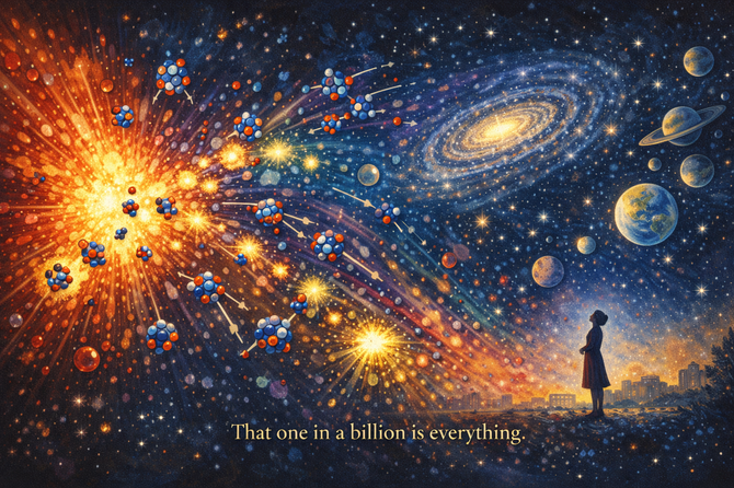 That one extra particle in a billion is everything we see: galaxies, stars, planets, people. Without parity violation, the universe would be empty.