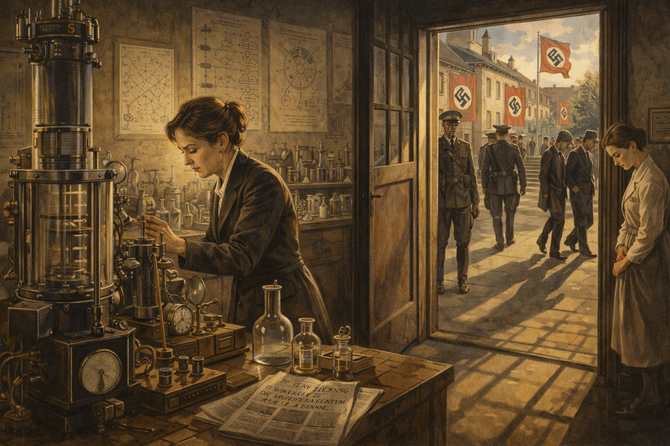 Adolf Hitler became Chancellor of Germany in January 1933. Within months, Jewish scientists were being expelled from universities. Lise's Austrian citizenship initially protected her—Austria was still independent—but she watched in horror as colleagues and friends fled or disappeared.