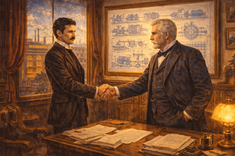 Westinghouse bought Tesla's AC patents for $60,000 plus royalties—finally giving Tesla the resources to build his dreams.