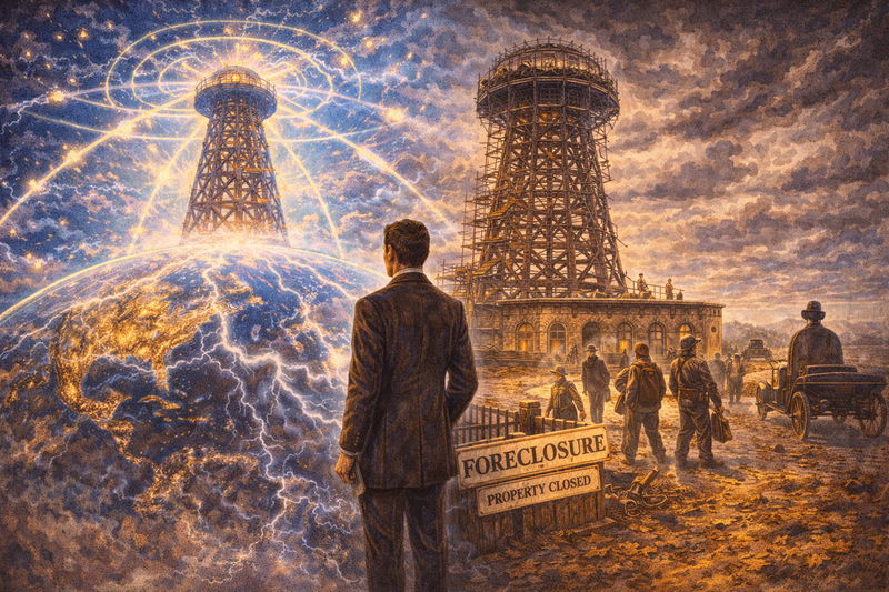 He became convinced he could transmit power wirelessly around the entire planet. He began building Wardenclyffe Tower on Long Island—a 187-foot tower that would broadcast free electricity to the world.