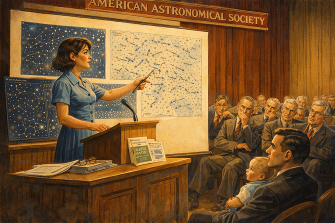 When she presented her results at the American Astronomical Society in 1950, the audience was hostile. Established astronomers dismissed her work. The New York Times headline? "Young Mother Finds Center of Creation." Not "scientist." Mother.