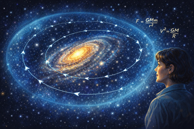 Stars at the edges of galaxies were moving just as fast as stars near the center—sometimes faster. This violated Newton's laws. It was as if cars at the outer lanes of a racetrack were speeding as fast as cars near the center—impossible, unless something invisible was pushing them.