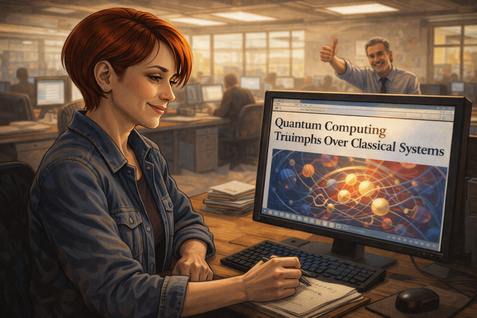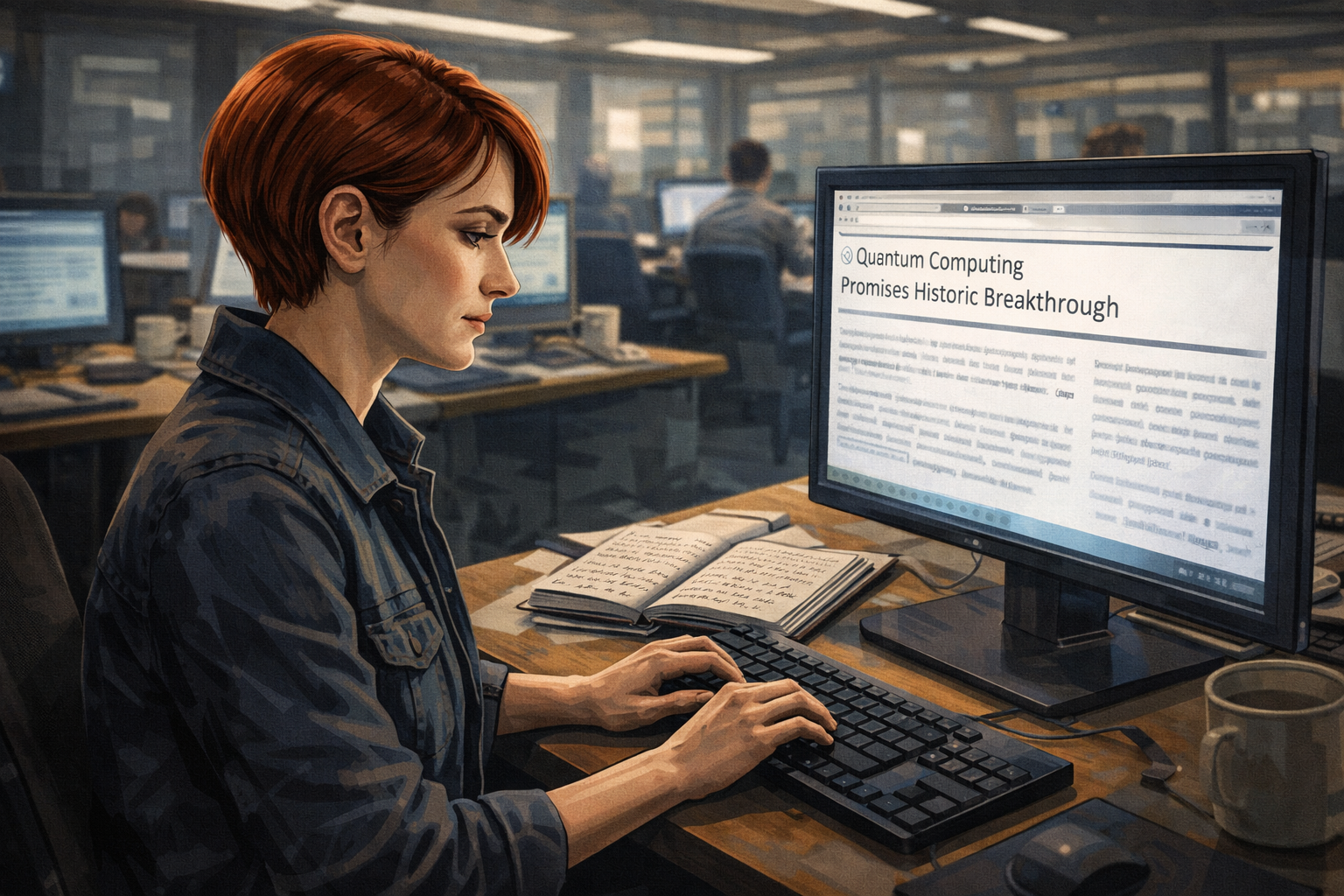 A technology reporter must file a quantum computing story before she can verify the claims.